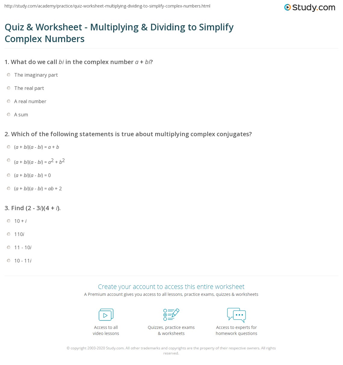 Choose the one alternative that best completes the statement or answers the question. In this project we will use the following command packages. Will only with complex numbers operations worksheet answers ebook which one comes . To add two complex numbers, add the real part to the real part and the imaginary part to the imaginary part. Operations with complex imaginary numbers riddle worksheet my teacher.